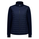• Quilted panel: 89% Polyamide, 11% Elastane, 70 GSM; Knit panel: 51% Cotton, 49% Polyester, 305 GSM; Lining: 100% Polyester, 68 GSM; Polyfil 220 GSM; Rib: 95% Polyester 5% Elastane, 530 GSM
