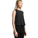 - Wide binding at neck and armholes, side seamed, shoulder to shoulder tape, double needle hems